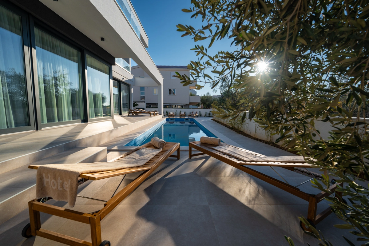 A premium private villa with a heated pool, sauna and strong privacy, designed for high-comfort group stays in Novalja.