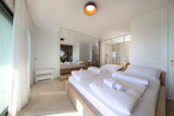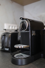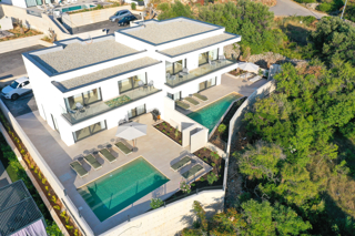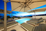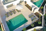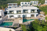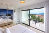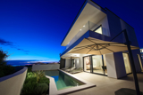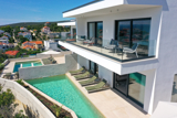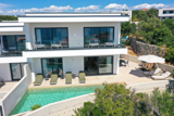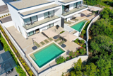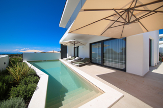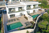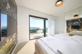 The bedrooms are located on the first floor and have access to a terrace overlooking the sea and a private bathroom. On the ground floor, there is a spacious living room and kitchen overlooking the sea, garden, and pool. All rooms are luxuriously designed, decorated, and fully equipped. In addition to superior design and comfort, guests have at their disposal Bosch-branded appliances, an Electrolux washing machine, a Nespresso machine, a wine cooler, and etc. The entire interior space is air-conditioned and has heated floors.