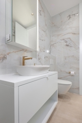 The villas have an area of 150 square meters, have three bedrooms with private bathrooms, and on the ground floor there is a room that has a separate entrance, and can be used if necessary to accommodate servants, own chef, or babysitter.