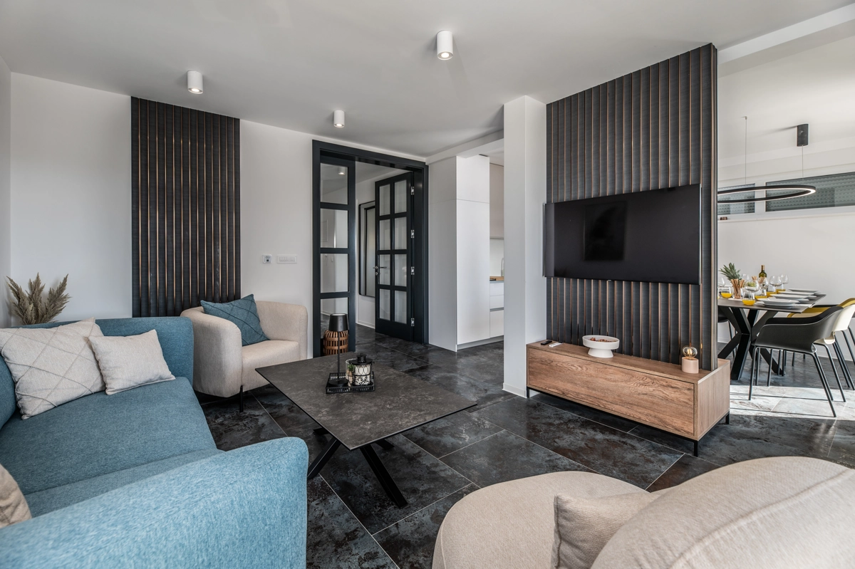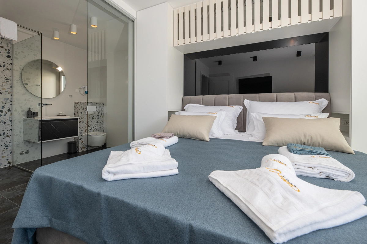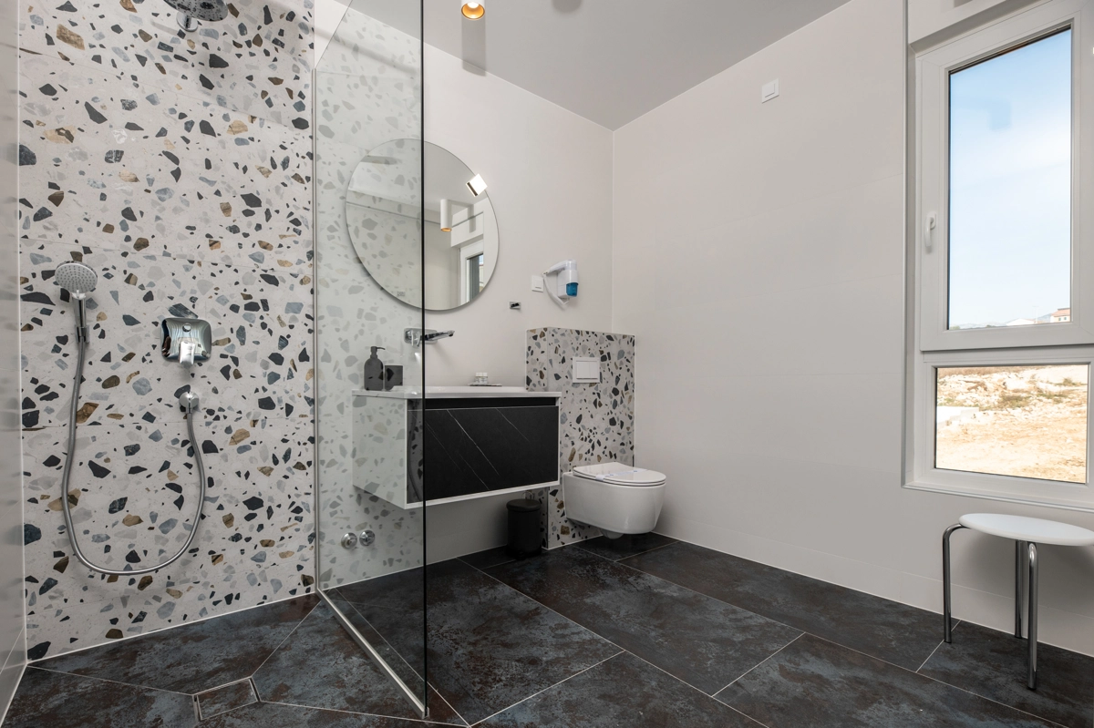 Villas are located just 10 minutes walking distance from the local beach and beautiful Riva with restaurants and cafe bars. A bakery and a little supermarket are just 3 minutes from the Villa, and the bus stop for Zrće Beach is just 2 minutes down the street.
