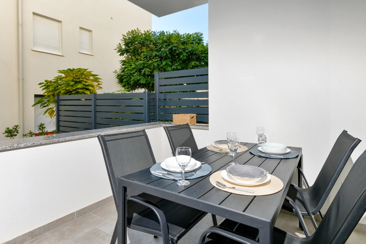 All apartments are fully equipped and offer beautiful, spacious terraces to relax in after a long day in the sun. The sea is only 100 meters away, and the city center is easily reached by a coastal promenade. All apartments include free Wi-Fi and private parking lots.