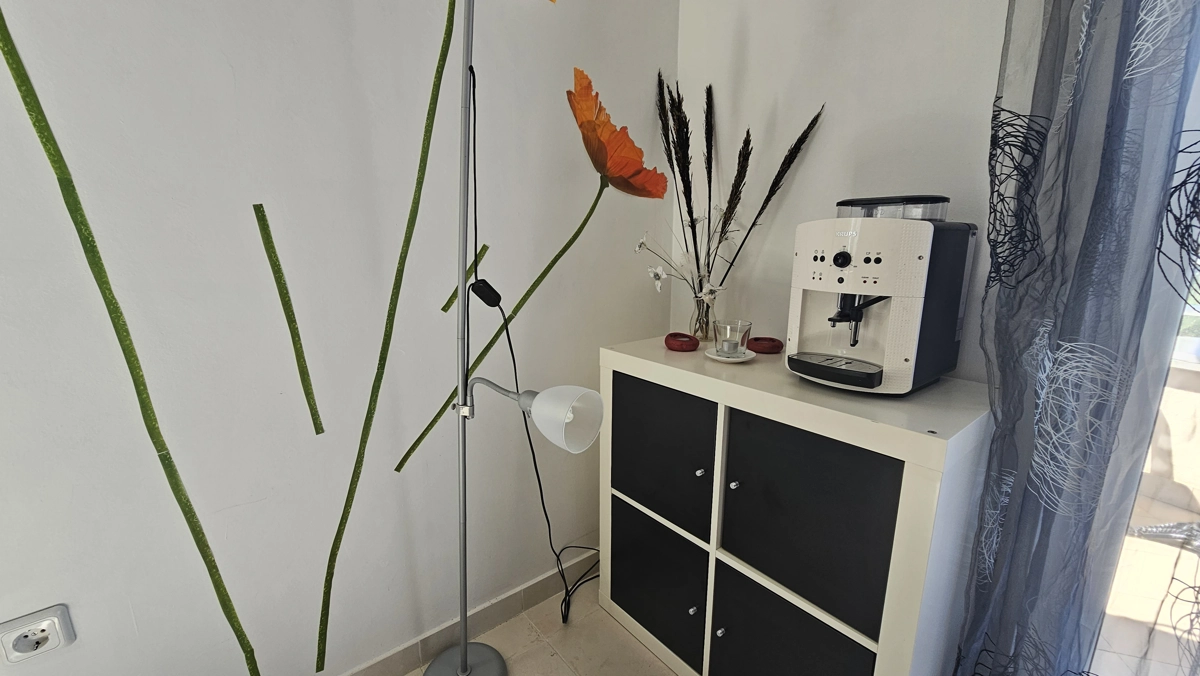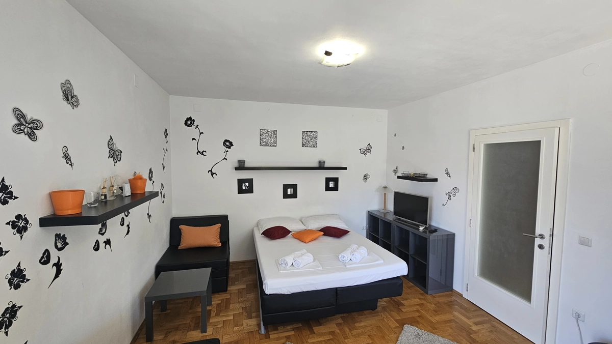 Inside, Studio Bella welcomes you with a comfortable living space designed for your ease. The studio is thoughtfully furnished to cater to your needs, providing a cozy bed, a well-equipped kitchenette, and modern amenities. It's your home away from home.